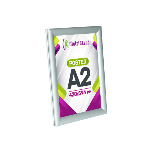 Двусторонняя клик-рамка формата А2 предназначена для размещения постера формата 420х594 мм. При этом видимая область постера - 400х575 мм. Габаритный размер клик-рамки - 448х622 мм.