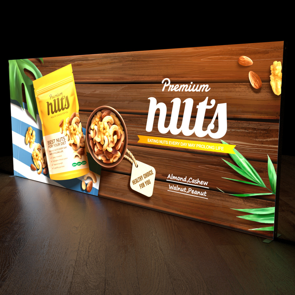 Зображення друкується методом сублімації на поліестрових світлорозсіювальних полотнах, які можна компактно складати, не боячись потертостей і зморшок, які разгладятся при натяжінні, а сам лайтбокс 600х250 см в розібраному вигляді зберігається в чотирьох сумках з внутрішнім ложементом, який дозволяє розмістити та зафіксувати всі комплектуючі лайтбоксу для безпечного транспортування.